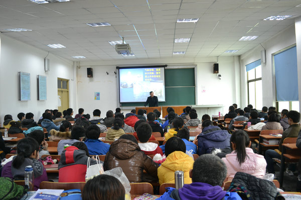 讲座之前,秦松研究员鼓励在座同学在此次讲座中积极互动、互为师生,达到教学相长的目的,希望此次讲座能够使同学们从中感受到专业的魅力、对大家的专业规划和人生规划起到帮助作用。秦松研究员和蔼朴实的话语使此次讲座的氛围轻松活跃很多。讲座伊始,秦松研究员以“为什么说海洋相关专业是好专业”为题,与在座同学互动交流,在交流中,大家认识到海洋相关专业在当今社会中的重要地位,对专业前景增加了信心。随后,秦松研究员用风趣幽默的语言介绍了海洋概念的定义,深入浅出地解释了什么是海岸带。海洋是地球生命支撑系统的基石,人类的经济活动与海洋自然生态系统相结合,形成海洋生态经济系统,而海洋本身也是人类生存发展的空间,具有极高的经济开发价值。他结合时下热门的“世界末日”传言解释了海洋和海岸带对人类社会生存与发展的重要性。大家在秦松研究员风趣的谈吐中领略到了一个不一样的海洋。