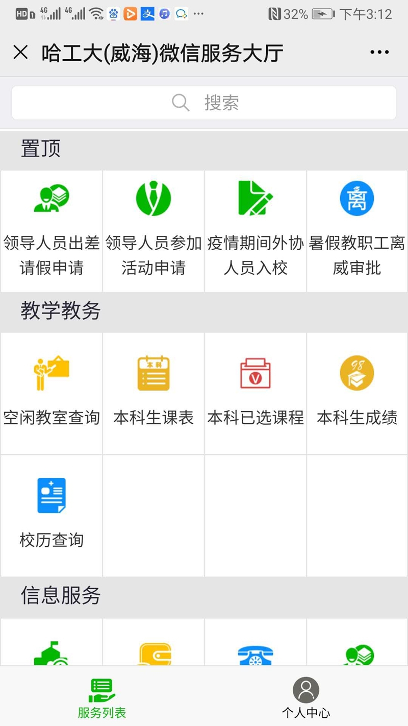 手机使用微信关注学校微信公众号“哈工大威海校微”,关注以后在菜单“校园服务à服务大厅”,微信服务大厅中办理,在个人中心先绑定用户身份,用户身份为新的职工唯一号,绑定完以后审批结果信息会通过微信短消息提醒,相关业务已经在微信服务大厅置顶。