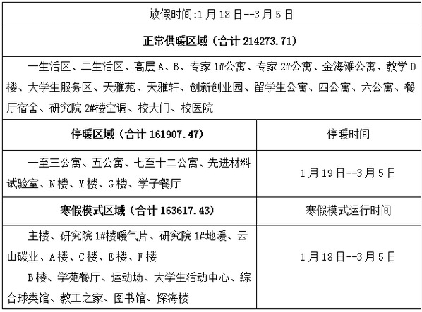 寒假将至,为了做好寒假期间的供暖和防寒工作,防止各楼内暖气及上水设施冻坏跑水,请各学院、各部门安排专人对本部门办公室、教室、实验室等,进行定期或不定期巡视。若发现问题,如漏水、跑水等,请及时联系动力维修,电话:5687043、5687126(工作时间:上午8:00-11:45;下午14:00-17:45)。