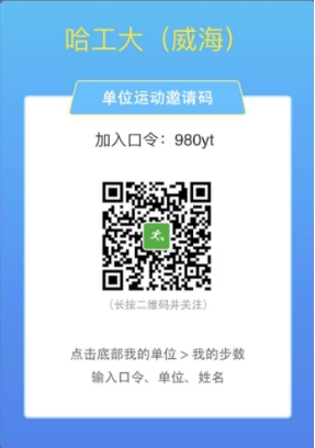 本次活动采取“互联网+”线上模式,利用微信“运动步数”小程序功能进行健步走计步统计工作。请参加本次活动的教职工下载关注“运动步数”公众号,加入“哈工大(威海)”,编辑姓名、手机号、部门即可参加校工会创建的“百日健步走”竞赛活动。