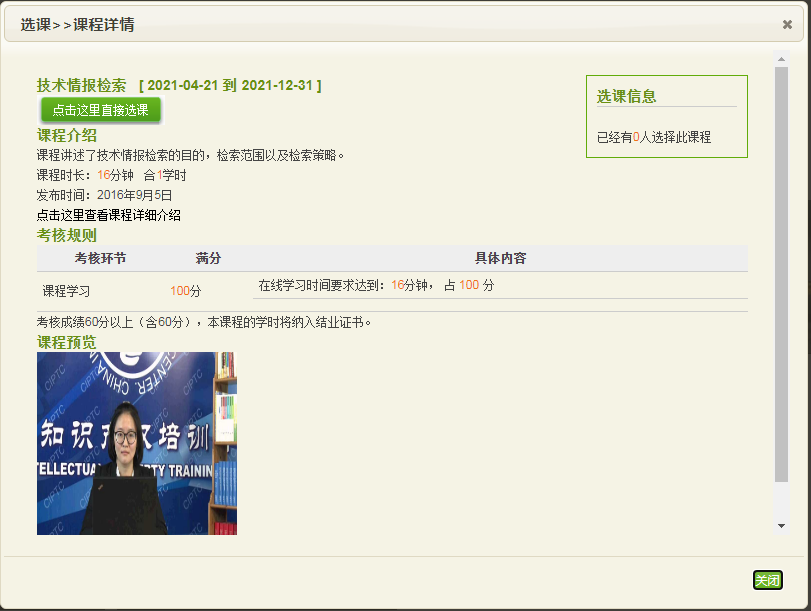 为深入贯彻落实习近平总书记关于知识产权工作的重要指示论述,发挥知识产权远程教育在强国战略中的作用,提高我校师生的知识产权素养,值此哈尔滨工业大学(威海)首届知识产权周活动之际,特开设2021年哈工大(威海)首届知识产权周网络培训班,课程中标明有结业考试的课程,自行学习并通过考试的学员,可申请获得由国家知识产权局中国知识产权培训中心颁发的结业证书。