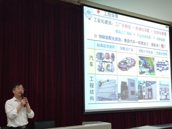 侯教授在报告中地分析了装配式混凝土现存的问题及其处理方法,介绍了目前已推广使用的钢-混凝土组合构件,钢混组合结构的适用体系、装配式市政与智能建造技术应用及范例、可更换开缝钢板剪力墙技术等。报告中也详细分析了钢混结构的适用性和特点,如钢肋预应力混凝土叠合板,具有明显的省筋、抗裂好的特点;多腔扁钢混凝土柱钢框架结构,因结构效率较低而不适用等。通过侯教授的报告,同学们系统了解了钢混结构,也对于土木的技术发展与经济性有了新的认识。