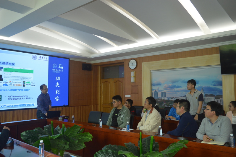 开班仪式邀请到清华大学信息科学技术国家实验室CPU中心汪东升教授做了《网络空间安全的最后一道关闸---AI+IoT时代的处理器硬件安全》主题报告。报告从嵌入式的核心技术进行了分析,对ARM和Intel等处理器的电压管理机制存在的严重安全漏洞进行了详细的介绍,对处理器作为计算机系统的底层硬件组成,其安全系数的保障直接涉及到计算机的安全性等角度进行了剖析,与现场教师及学生进行了深入探讨。