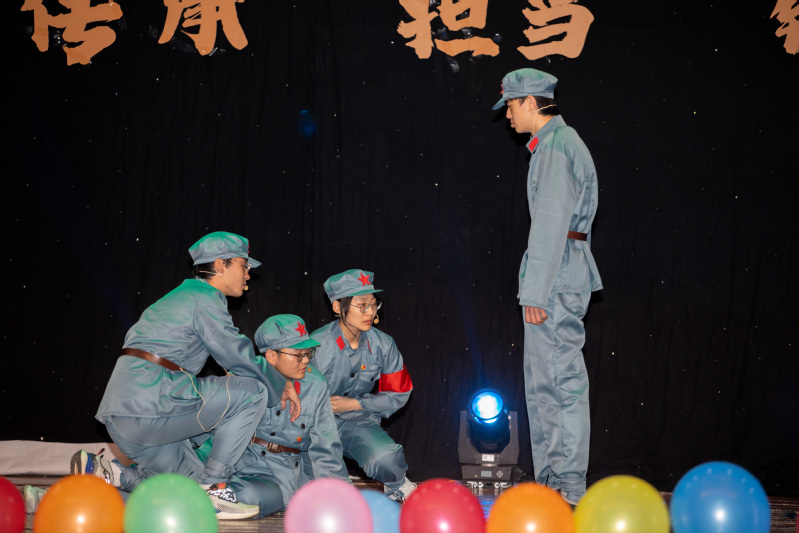 “勇担初心使命”篇章中,2004005班团支部通过视频配音方式,追忆先辈荣光,珍惜盛世不易,用勇担责任的行动献礼百年辉煌;2004003班团支部带来《觉醒年代》配音与《祖国不会忘记我》合唱,以自己的声音抒发爱国热情;2004004班团支部带来话剧演出《金色的鱼钩》,重返长征路,学习共产党的赤诚精神与坚定意志。