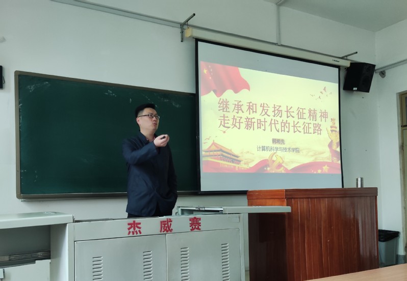 韩希先以“继承和发扬长征精神,走好新时代的长征路”为主题,从长征的历史、长征精神和长征的现实意义展开讲解。1934年10月,为摆脱国民党军队的包围追击,中国工农红军主力从长江南北向陕甘宁根据地实行的一次战略大转移,被称作长征。他以长征历程为主线,以重要战役、重要人物和重大历史事件为主体,通过故事、照片等生动讲述了红军长征中血战湘江、四渡赤水、巧渡金沙江、飞夺泸定桥等历史事件,彰显了红军坚定革命的理想信念、不畏艰难险阻、艰苦奋斗、顾全大局、严守纪律、紧密团结的长征精神。