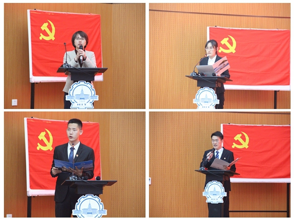 仪式在《国际歌》的旋律中拉开帷幕,学院党建工作办公室主任谭军华宣读了参加入党宣誓的预备党员名单,学院党委副书记谢芳琳、学生支部第一书记姜琪、王如晨、各学生党支部书记和和优秀党员代表为预备党员佩戴党徽。预备党员代表杨柏汇和张一童的领誓,预备党员们举起右拳,共同在党旗下庄严宣誓。院学生会主席卢家辉作为预备党员代表发言,他表示在这个庄严的会场上,大家共同经历了一次神圣的蜕变。在今后的日子里一定牢记今天的誓言,不断提高党性修养,不断提高自身素质和本领,做一名经得起考验的共产党员。2019级学生王兆瑞作为积极分子代表发言,他表示要以优秀党员为榜样,不断提升自我,积极向党组织靠拢,争取早日成为一名党员。党委副书记谢芳琳在讲话中提到,2021年是中国共产党成立100周年,也是“十四五”开局之年,必将在中国历史上留下浓墨重彩的标注,今天能够参加入党宣誓仪式意义重大,同时她对现场的党员们提出寄语,要牢记哈工人许党报国的底色,赓续红色基因,争做时代新人。