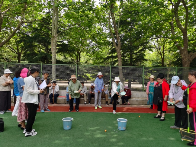 本次运动会个人项目按年龄划分代表队,男子以70岁为分界线,70岁及以上为甲组,70岁以下为乙组;女子以65岁为分界线,65岁及以上为甲组,65岁以下为乙组。离退休老同志分别参加了30米运球跑、30米拾豆跑、30米钓瓶跑、30米托球跑、2米投标中靶、2米乒乓球入筐、2米套圈、5米地滚球和门球进门等个人项目的比赛,共同参与了轻松愉快的团体项目——气排球对抗赛。门球场处处欢声笑语,老同志们热情高涨、神采飞扬,在快乐轻松的氛围中分享着运动的喜悦和精彩。经过3个小时的快乐比赛,在兴味未尽中结束。