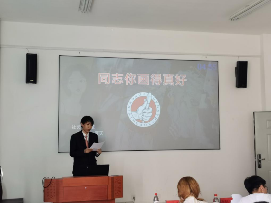 项目化答辩结束后,新社团在申请答辩中介绍基本信息、章程建制和活动安排等内容。“同志你画得真好”是一个由热爱数字艺术的同学筹备发起的社团,围绕数字绘画展开。