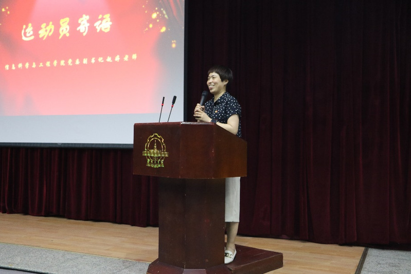最后,赵婷寄语运动员。赵婷肯定了信院学生干部、田径队运动员的付出与努力,指出享受进步、享受过程的体育运动精神;分享了校友卢致辉的故事,总结在运动会中自上而下汇聚而成的强烈集体荣誉感是信息学院拼搏的不竭动力,并对信息学子寄予信息精神传承的殷殷厚望。鼓励大家将运动会中的拼搏进取、团结协作的精神融入到日常的学习工作和生活中,不负青春年华,奋发作为、追求卓越,为实现中华民族伟大复兴而努力奋斗。