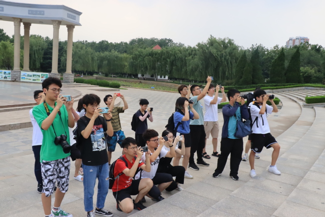 王晓光是中国摄影家协会会员、山东省艺术摄影学会艺术顾问、威海市摄影家协会名誉主席、威海市政协摄影联谊会副会长、威海市精品旅游促进会副会长兼秘书长。在主楼广场和日月湖边,王晓光以自己拍摄的照片为同学们讲述了在不同角度如何更好的表现整体氛围与画面的细节,并针对同学们所提出的问题进行了专业而全面的解答。在日月湖边拍摄校园景色时,王晓光通过对于不同构图、角度、焦段的选择,指导同学们拍摄出了不同风格的照片,并指出在室外采风时,随机出现的人、事、物都可能促成一张好照片,希望同学们能够通过这一次的摄影实践课程,将平日里学习到的知识应用于实践。
