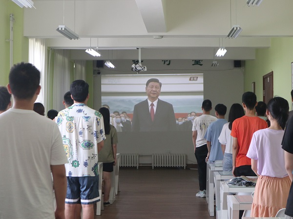 6月29日上午,竹贤书院组织部分师生在讲竹堂观看庆祝中国共产党成立100周年“七一勋章”颁授仪式,共同致敬最闪亮的星。