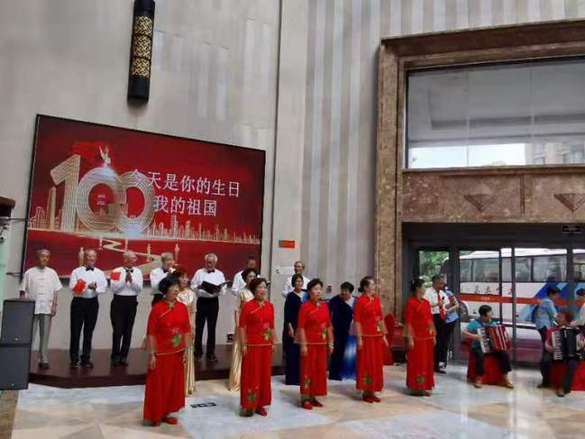 为庆祝党的百岁生日,6月30日上午,离退休合唱团在离退休办副主任李华军带领下,到威高医养中心为老党员进行慰问演出。