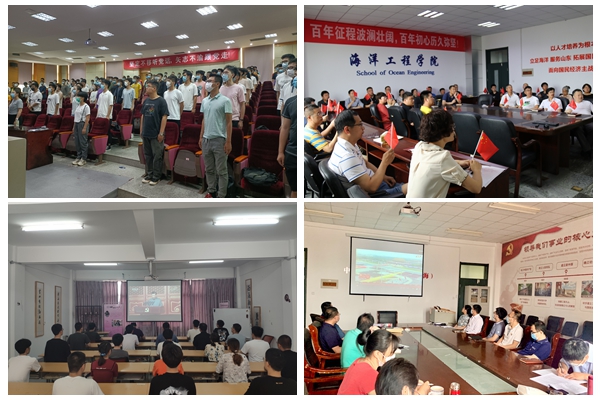 7月1日上午,海洋工程学院组织师生分别在研究院北321和621、232会议室,G202、丁香书院讲堂集中观看庆祝中国共产党成立100周年大会。海洋工程学院师生党员带着对党百年历程的感佩与感悟,更带着对党新百年的憧憬,跟随着直播特别报道的镜头,共同走进那个汇聚十四亿中国人民目光的地方。
