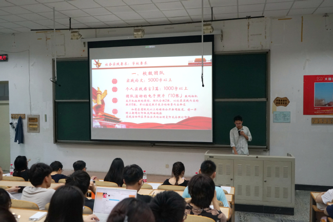 大会开始,郭明洋根据不同团队类型,讲解了暑期社会实践校院两级的要求,强调各团队应注重实践过程的宣传报道,在保证安全的前提下,保质保量完成暑期社会实践活动并认真撰写相关材料。