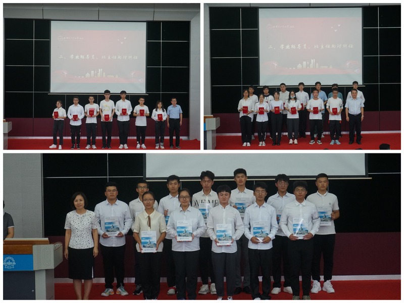 大会上,通过播放学院优秀校友对21级新生的寄语视频,传递了校友对2021级新生的衷心祝福和殷切期望。季振洲和张维刚一同为“品学兼优、经验丰富、学习优异、乐于助人”的学业辅导员与班主任助理颁发聘书。常红霞为各班赠送了《“筑梦之路”——优秀学子成长集》,引导新生锤炼自身素质,追逐青春梦想。