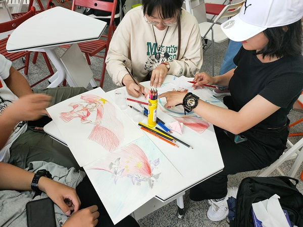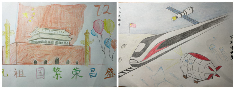 活动以观看爱国主题短片开始,同学们一起回顾了新中国72年的峥嵘岁月以及新中国建设的伟大飞跃。接下来,同学们以小组为单位开始创作,拿起画笔尽情发挥,一点一滴的描绘出自己心目中的祖国,巍峨的长城、庄严的天安门、腾飞的巨龙在同学们的笔下活灵活现,一幅幅绚丽的画作,一颗颗炽热的爱国心,大家用画笔为祖国母亲献礼。