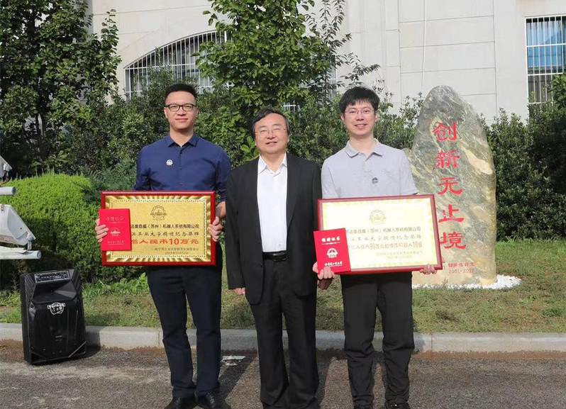 10月2日早8点,创新设计室成立20周年纪念石揭幕仪式在研究院二号楼前顺利举行,哈工大副校长、威海校区校长徐晓飞,创新设计室刘会英教授,海洋工程学院、校友办、学工处相关负责人,创新设计室二十余位返校校友及新生代表共同参加揭幕仪式。为感恩回馈母校,法奥意威(苏州)机器人系统有限公司为创新设计室捐赠10万元创新基金和价值90万元的试验设备,徐晓飞为捐赠人姚庭、巩相峰颁发奖牌和证书,巩相峰代表创新实验室校友发表感言。随后徐晓飞致辞,他代表学校欢迎校友们回家,对校友们感恩母校、回馈母校的善举表示感谢,他重点介绍了威海校区创新创业、校友交流两个方面的工作进展,希望“三帮一平台”的校友工作理念能推动学校和校友的合作共赢、携手共进。
