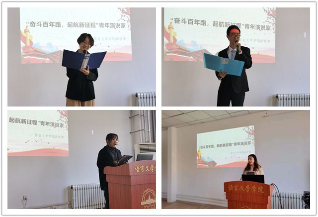 10月23日上午,语言文学学院“奋斗百年路 启航新征程”青年演说比赛在博学楼315会议室举行。语言文学学院党总支副书记王莹、辅导员张凯、团总支学生会代表担任本次比赛评委,学院部分大一年级学生到场观摩。