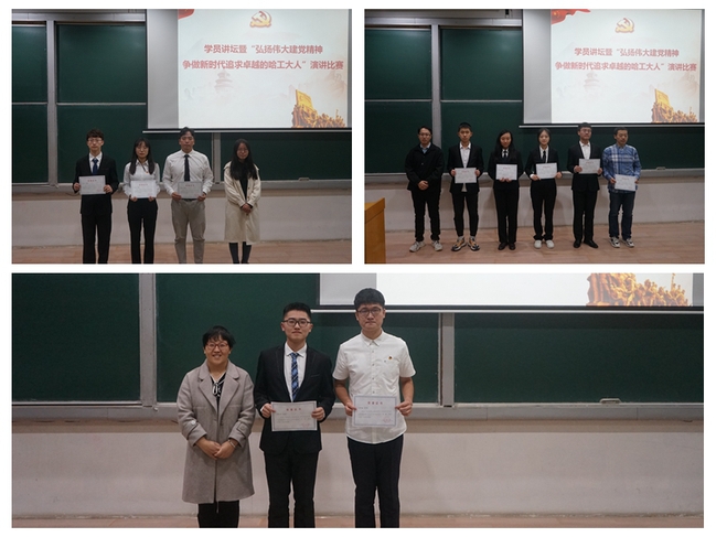 决赛现场,参赛选手准备充分,各展风采。演讲人回顾中国共产党磅礴建党历史和哈尔滨工业大学的百年艰辛历程,俯瞰历史与今朝,他们重温光熙先生“追求卓越、许党报国、知行合一、以身作则”的光熙精神,学习”坚持真理,坚守理想“的伟大建党精神;追忆“八百壮士”吃苦战斗、奉献攻关、竭诚奉献的丰功伟绩,学习”践行初心,担当使命“的伟大建党精神;回望疫情期间,无数逆行者,用忠诚践行初心,用奉献履行使命,用生命保护生命,用大爱战胜磨难,谱写出可歌可泣的英雄篇章,学习“不怕牺牲、英勇斗争”的建党精神;回顾刘永坦院士几十年牢筑海上长城,致力于打破科技封锁,誓以科技报国的感人事迹,学习“对党忠诚,不负人民”的伟大建党精神。风华正茂正青春,砥砺前行正当时,新百年哈工大人必将传承红色基因,践行初心使命,将规格功夫作为基础,将远大抱负落实行动,传承弘扬伟大建党精神,争做追求卓越的哈工大人。