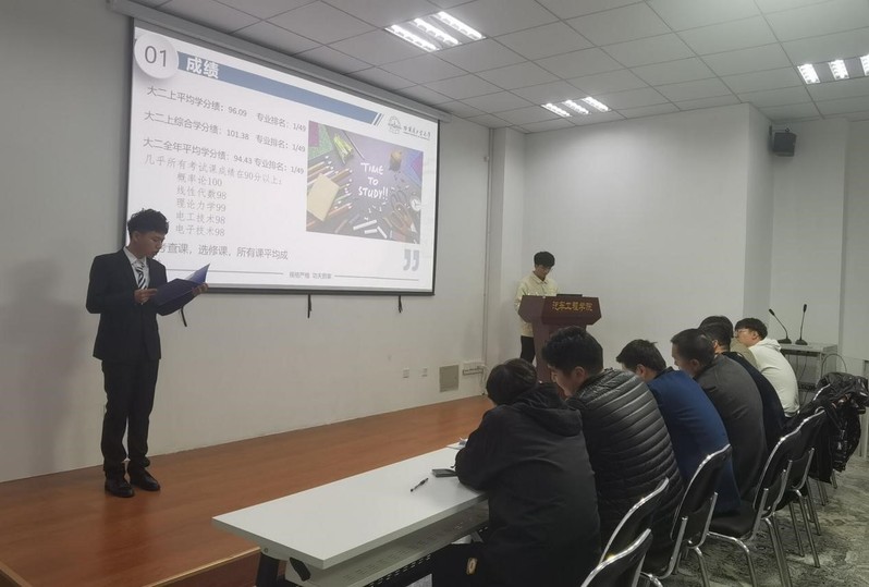 解放领航奖学金由一汽解放汽车有限公司捐资设置,旨在表彰在校期间勤奋学习、刻苦钻研、全面发展,具备一定的知识应用和研究能力的学生,为国家汽车产业发展培养优秀人才。评比大会上,参选同学依次进行自我展示,本科生主要从学习成绩、科研竞赛、学生工作、社会实践等方面进行风采展示,研究生从个人科研能力、专利和学术论文等方面进行风采展示,他们不仅对过去的大学生活进行了回顾与总结,还对未来进行了规划与展望,展现了工大优秀学子的风采。随后,评委老师针对各选手的具体情况进行了提问并打分。