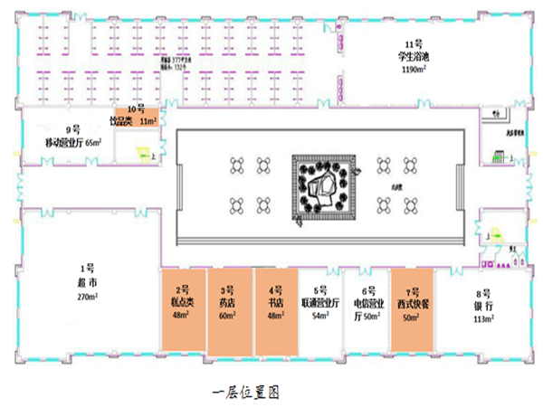 4.招租商铺基本情况:招租商铺为图中一层商铺号为2、3、4、7、10、11的商铺,二层商铺号为12-33的商铺。