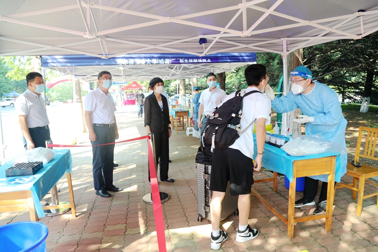 按照地方常态化疫情防控要求,新生及随行人员提前在易班App中完成了相关入校审批手续,并按照要求在校区南门进行入校核查。在南门入口,新生及家长经过测温、消毒、扫描场所码和身份证信息,核查通过后再分别经过学生通道和家长通道入校,并第一时间进行核酸检测。校区在南门和学子路步行街分别设有核酸检测点,从早上6:00到晚上10:00,不间断地为新生与家长提供核酸检测采样服务。