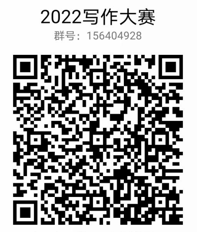 请同学们前往大赛官网(https://uchallenge.unipus.cn/)“选手报名/参赛”页面进行注册报名。注册报名完成之后,请加入QQ群:156404928,群名称为:2022写作大赛,关注群内通知。群二维码为: