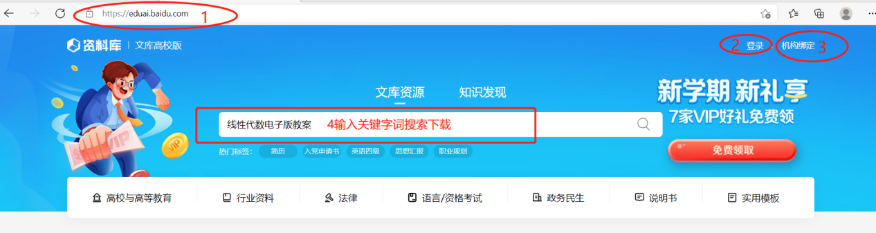 (1)在校内IP范围内点击百度文库高校版链接。