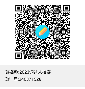 校赛比赛时间:2023年4月7日——4月16日。本校具体比赛时间将于4月4日通过 “词达人”公众号的推送通知。参赛选手请务必关注公众号与校赛QQ群,以便接收赛事通知。