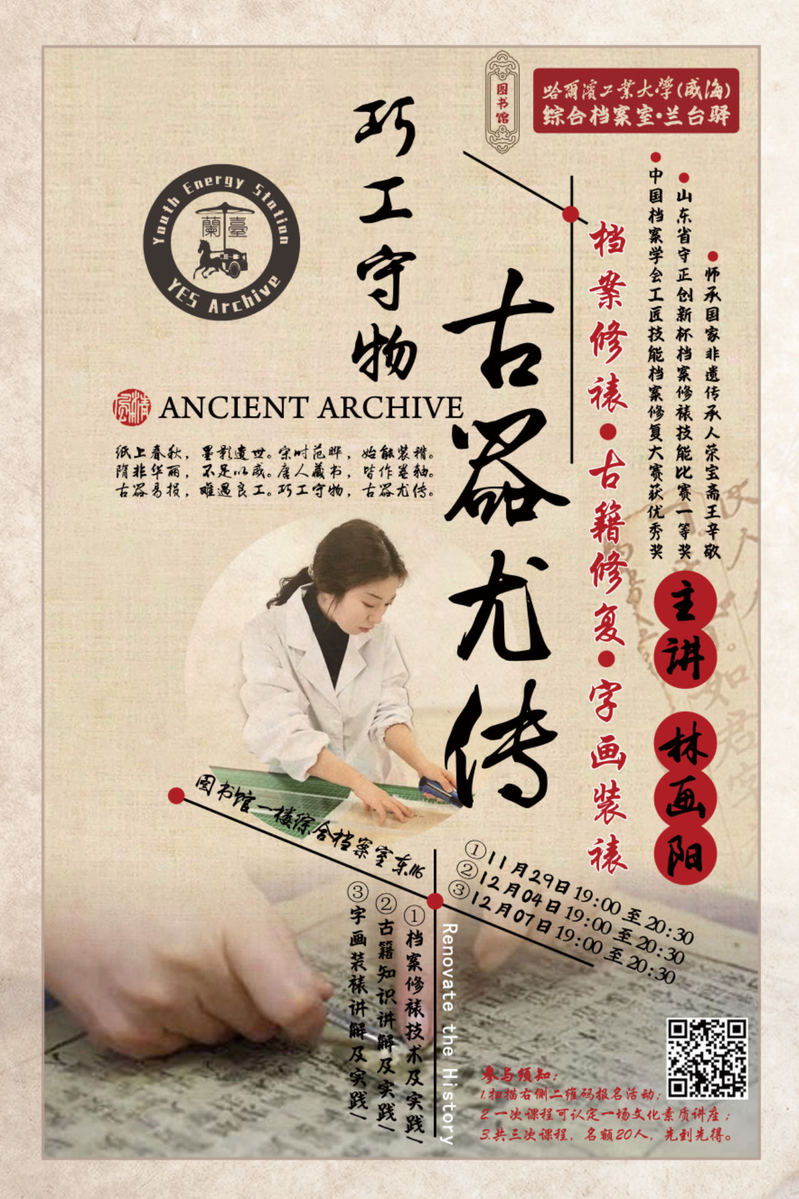 一、 11月29日 19:00-20:30|档案修裱技术及实践