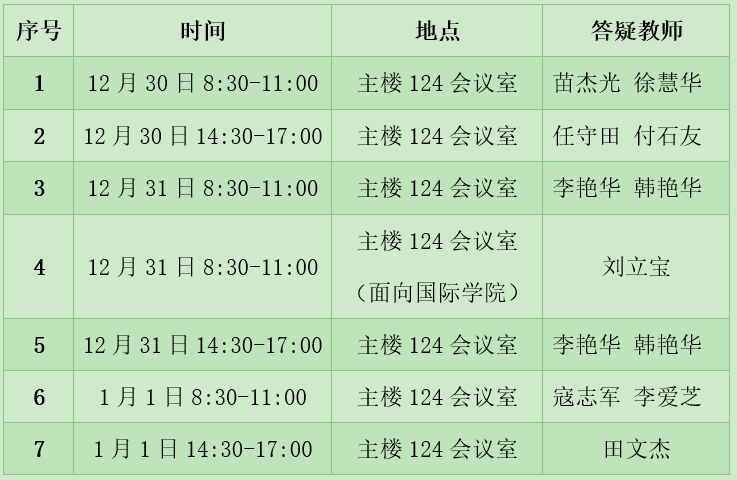 为了帮助同学们更好地备考《大学物理》期末考试,理学院光电科学系联合大学物理教研室和“纽扣”学业辅导工作室推出期末考前答疑帮辅活动。具体安排如下表: