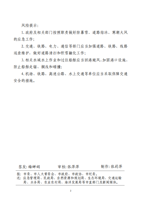 请各单位及广大师生高度重视,提前做好防范暴雪、道路结冰、寒潮、大风的工作,及时增添衣物做好防寒保暖,密切关注天气变化,注意防范: