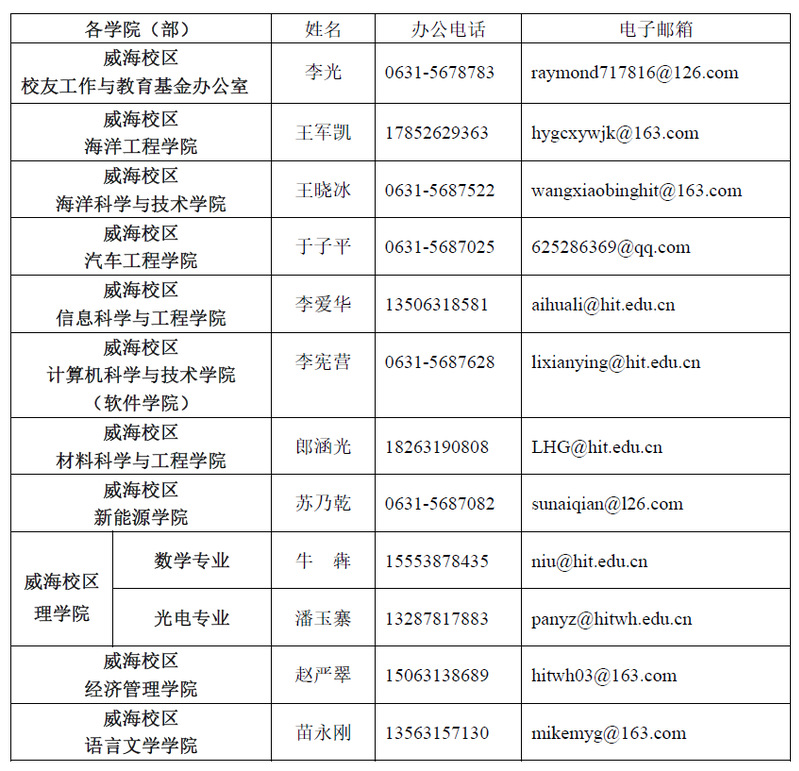 秩年校友联系人及联系方式