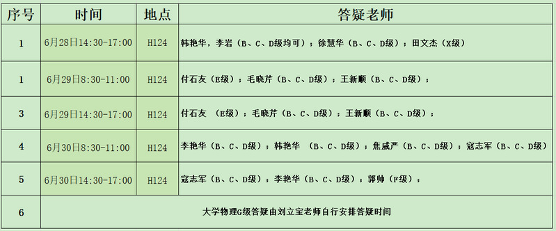 为了帮助同学们更好地备考《大学物理》期末考试,理学院光电科学系联合大学物理教研室和“纽扣”学业辅导工作室推出期末考前答疑帮辅活动。具体安排如下表:
