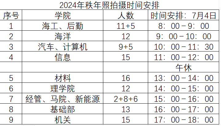 2.补拍时间:请教职工按照规定时间到场拍摄,因特殊情况(出差、开会等)不能按单位要求时间参加的请在7月6日上午8:00到10:00到场补拍。