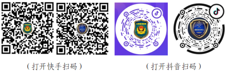 通过“公安部刑侦局”、“国家反诈中心”快手、抖音账号(请扫码或在平台搜索“公安部刑侦局”或“国家反诈中心”)观看公安部刑侦局、国家反诈中心举办“开学反诈第一课”线上直播活动,反诈民警结合典型案例讲解防骗知识。