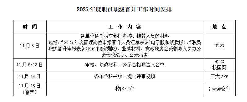 根据校区工作安排,近期将进行2025年职员职级晋升工作,现将有关要求通知如下: