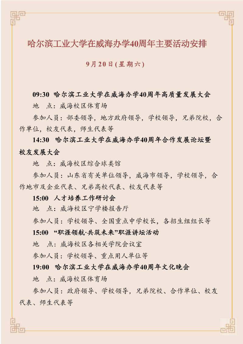 哈尔滨工业大学在威海办学40周年主要活动安排