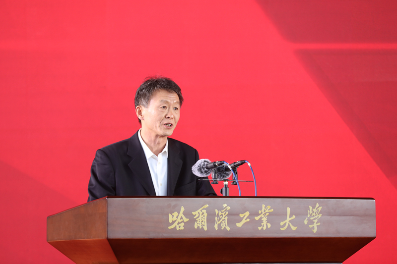 校友宋森华满怀深情回顾了自己的求学时光,并代表广大校友向母校送上真情祝福。他讲到,母校给予广大学子的不仅是书本上的专业知识,更是老师们身上“规格严格,功夫到家”的校训精神,融入血脉的家国情怀和敢闯敢创的非凡魄力。他表示,校友与母校是牢不可破的“情感共同体”,是同向同行的“命运共同体”。面向未来,广大校友将弘扬校训传统,为国家创品牌,为母校添光彩,与母校开展全方位、多样化合作,共同书写以创新驱动引领强国复兴的哈工大人新答卷。