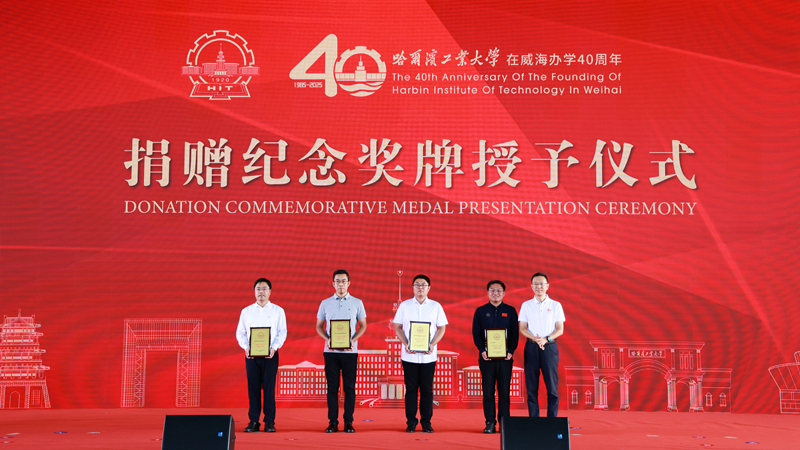 会上,各位领导和嘉宾,分别为荣获“四十年·四十人”校城共荣奖的教职工代表颁发金质奖章,为企业代表和校友代表颁发“哈尔滨工业大学杰出教育贡献奖”“哈尔滨工业大学教育贡献奖”“哈尔滨工业大学捐赠纪念奖”等证书和奖牌。