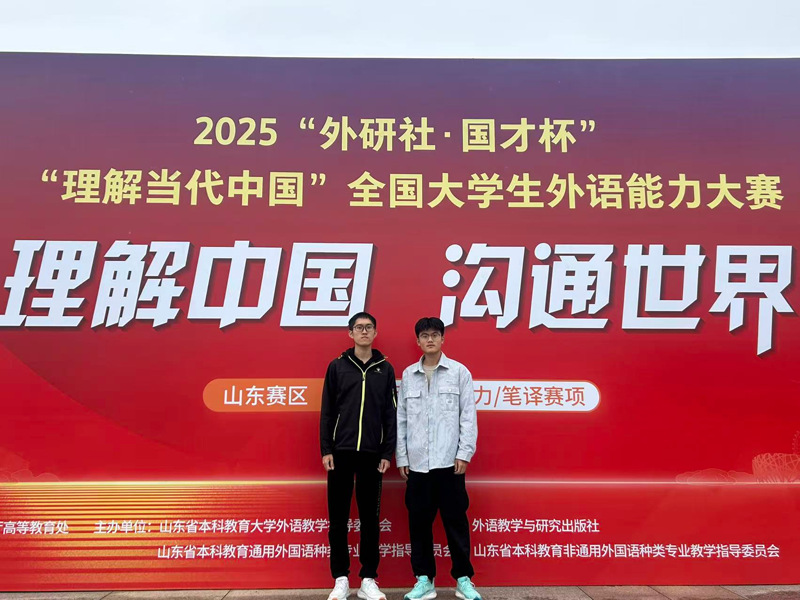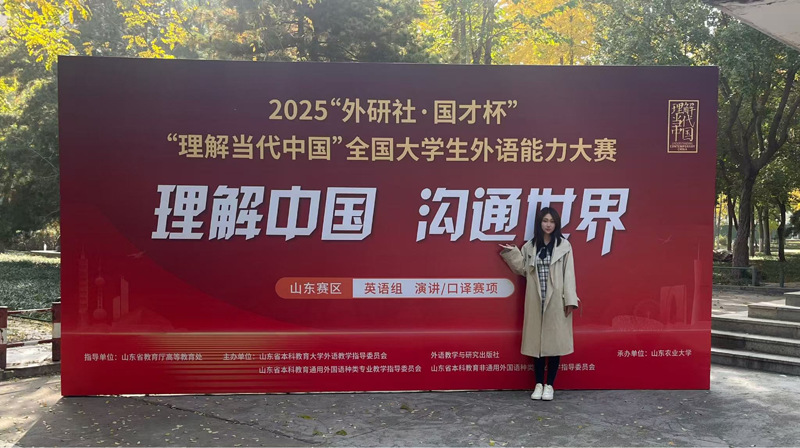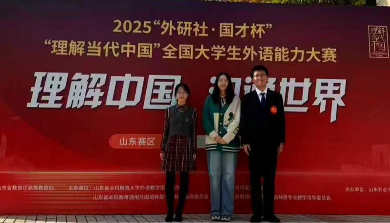 近日,2025“外研社・国才杯” “理解当代中国”全国大学生外语能力大赛山东省省赛圆满落幕。校区学子凭借扎实的英语功底、敏锐的思辨能力与出色的综合素养,在多个赛项中脱颖而出,累计收获金奖2项,银奖4项,铜奖4项的好成绩,彰显校区外语教学与人才培养的卓越成效。