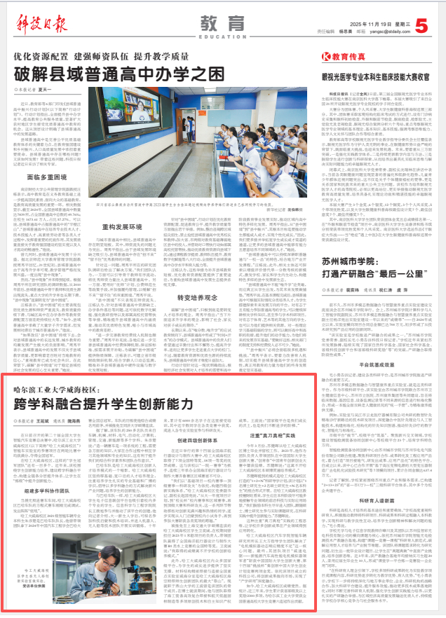 在日前召开的第二十届全国大学生智能汽车竞赛总决赛中,哈尔滨工业大学威海校区(以下简称“哈工大威海校区”)智能车实验室的参赛项目在两轮比赛中均获满分,夺得全国冠军。在哈工大威海校区,这样的“学生冠军团队”还有一百多个。近年来,该校围绕学生创新能力培养,建设跨学科融合平台,构建全链条分层提升体系,让学生在“练级”中提升创新能力。
