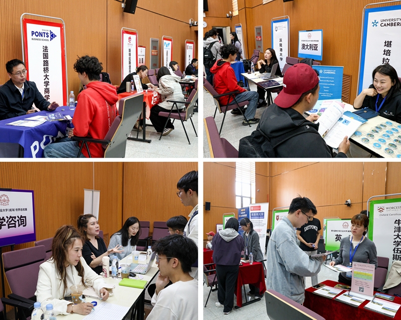 本届世界名校展由国际合作处联合计算机科学与技术学院、劲松书院联合主办。活动现场设置世界名校展区、留学咨询展区、留学达人展区、趣味活动展区四大展区,多维度搭建学子与境外名校对接的桥梁,全方位满足学子留学规划需求。(尹玉叶 /文 罗茂嘉 马姝颜/图)