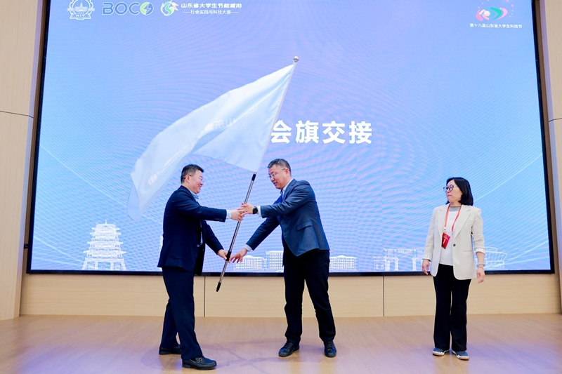 闭幕式上赛事会旗移交至第五届大赛承办高校山东建筑大学
