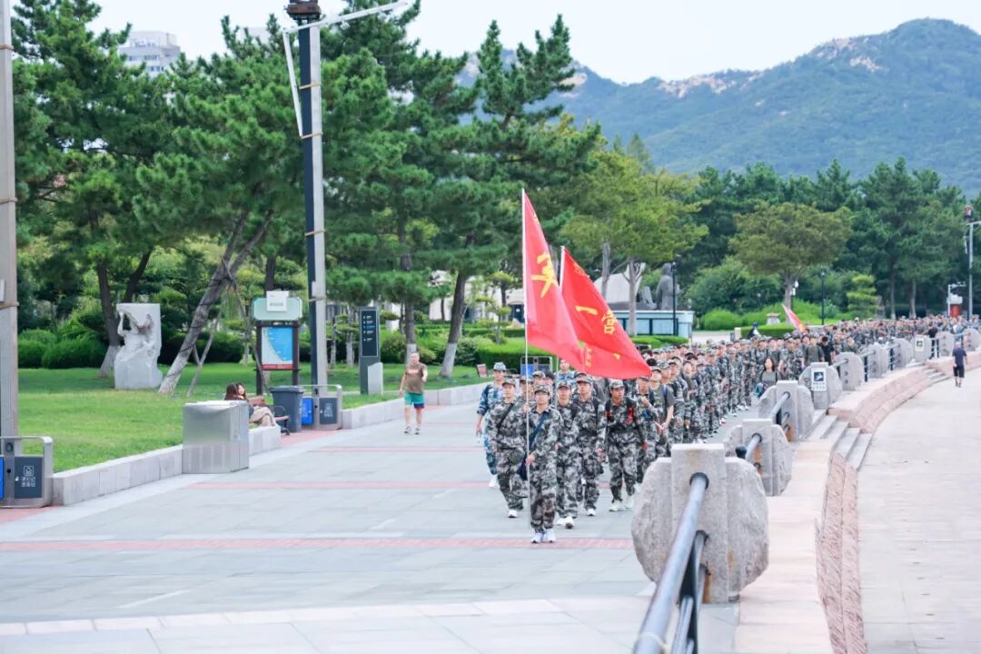 迷彩绿邂逅蔚蓝海 3300余名新生拉练登上刘公岛